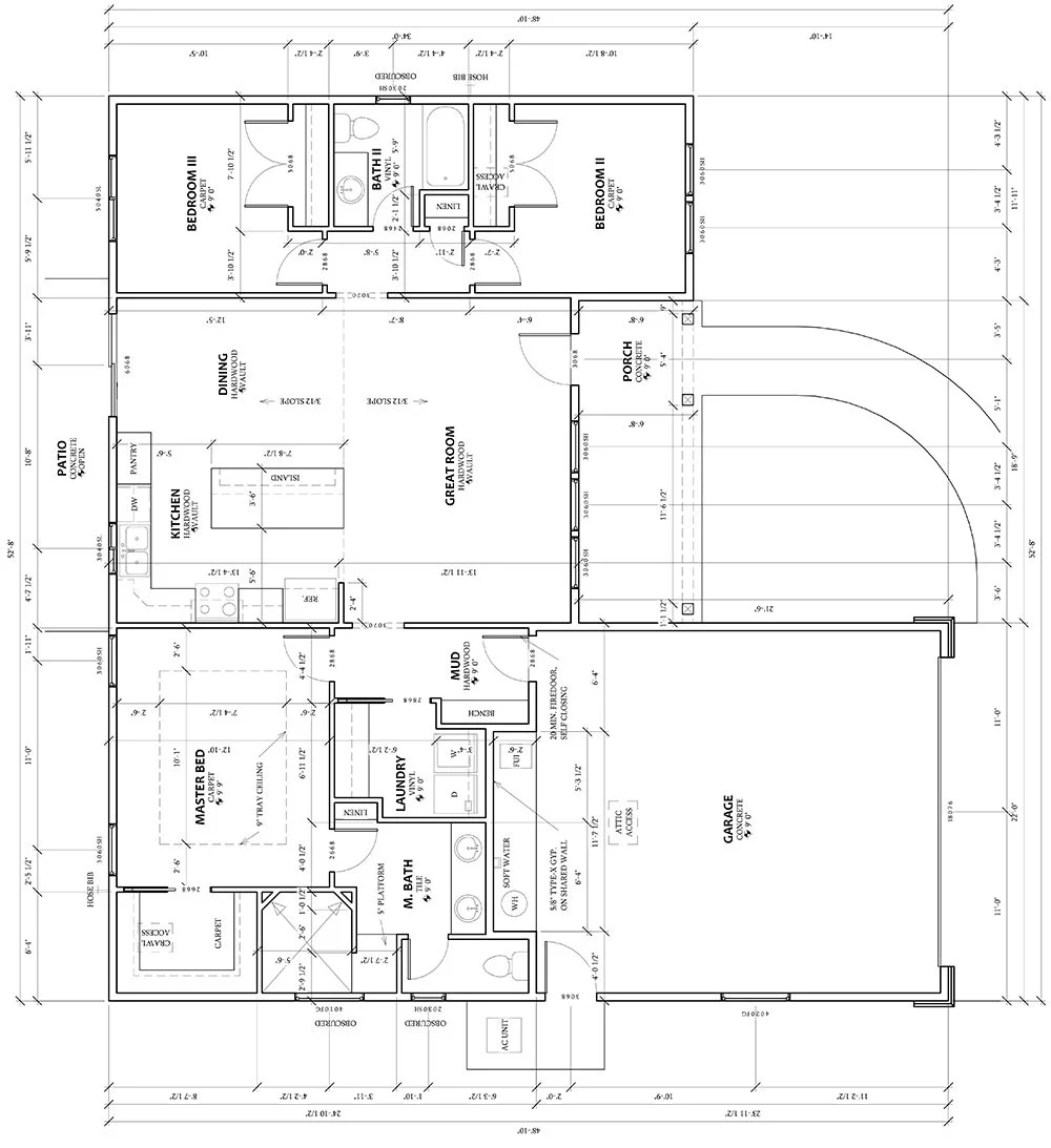 This charming single-story home offers a blend of modern and traditional design elements. Its steeply pitched roof and clean, symmetrical layout give it a classic appeal. The two-car garage is accented by stone columns, while the covered front porch adds a welcoming touch. Large windows bring plenty of natural light into the home, enhancing the sense of openness. This design is ideal for homeowners seeking a functional, efficient, and stylish residence with a timeless look.